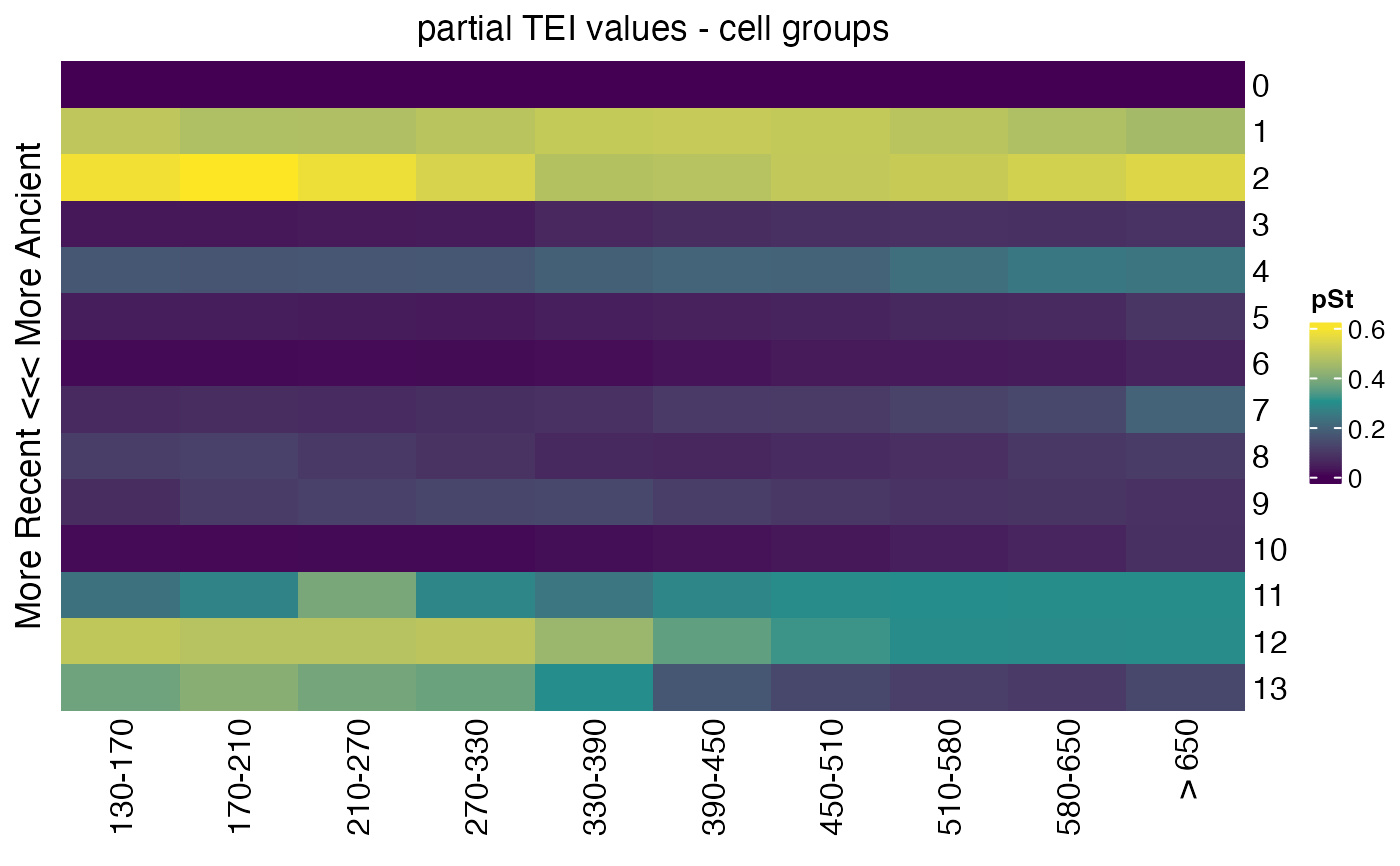 where TEI_is is the partial TEI value of gene i, \(f_is = e_is / \sum e_is\) and \(ps_i\) is the phylostratum of gene i.